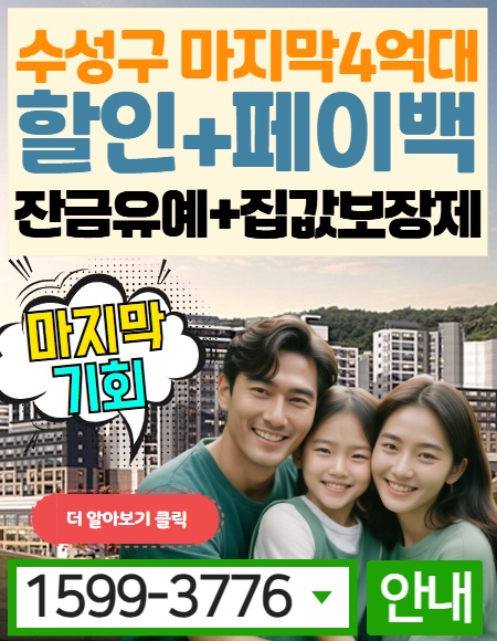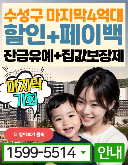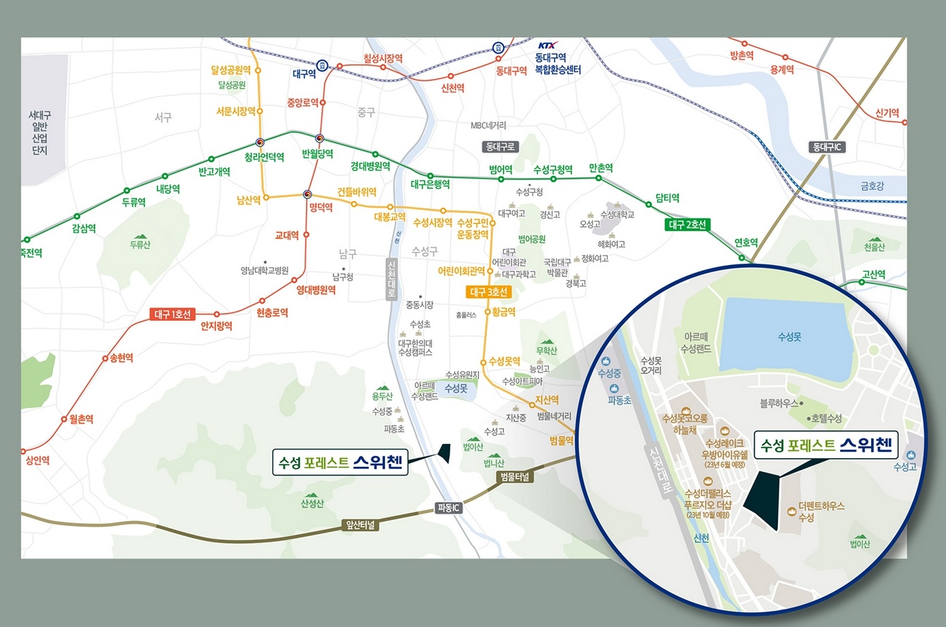 수성못역, 파동IC, 신천대로 편리한교통 팝산터널등 사통팔달 교통의 요지 더 알아보기 파동초등학교, 수성중학교, 능인고등학교 교육의중심 경북고등학교 등 명문학세권 더 알아보기 수성못에 둘러싸인 청정 자연 쾌적한 생활 대형마트, 관공서, 병원등 풍부한 편의시설 더 알아보기 수성못역, 파동IC, 신천대로 편리한교통 팝산터널등 사통팔달 교통의 요지 파동초등학교, 수성중학교, 능인고등학교 교육의중심 경북고등학교 등 명문학세권 수성못에 둘러싸인 청정 자연 쾌적한 생활 대형마트, 관공서, 병원등 풍부한 편의시설